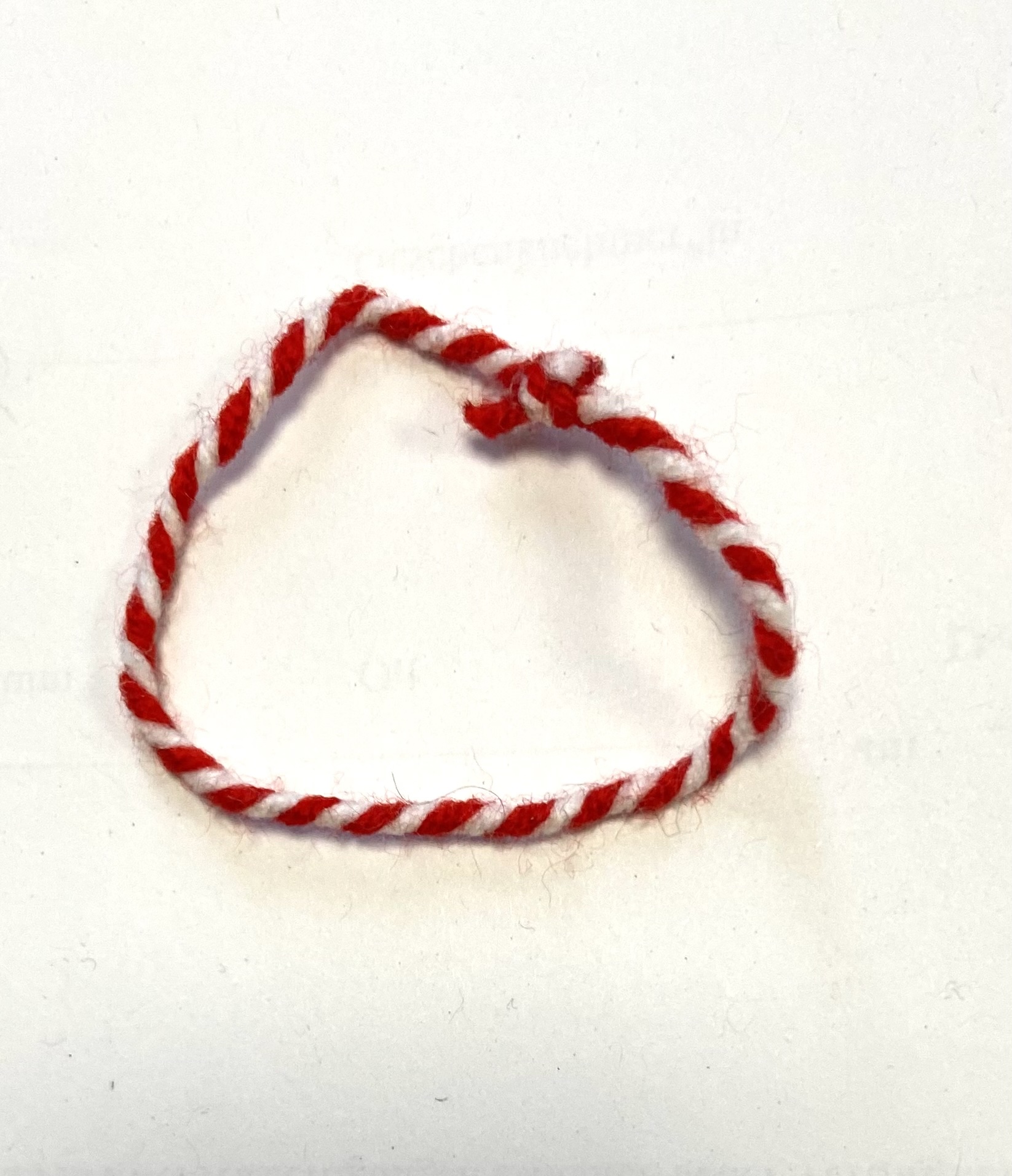 Es handelt sich um ein Basinbar (Frühlingsband oder auch jesidisches / êzîdîsches Neujahrsarmband). Jedes Jahr zum Neujahrsfest werden Basinbars zum ersten Mittwoch im April (Çarşema Sor/Çarşema Serê Salê/Neujahr/Frühlingsfest) von Angehörigen der Pīre-Kaste an Angehörige der Murīdūn-Kaste im Rahmen von gegenseitigen Besuchen verteilt. Zur Herstellung werden Schnüre aus Baumwolle mit Handspindeln verkordelt oder auch verknüpft. Es entstehen lange Schnüre bzw. 'Knäule', die dann verteilt werden und von denen Stücke passgenau für die Träger:innen abgeschnitten und ums Handgelenk verknotet werden. Ein Basinbar soll traditionell so lange am Arm verbleiben, bis es von selbst abfällt – geschieht dies, dürfen die Träger:innen sich etwas wünschen. Ein Entfernen wird als Regelverstoß gewertet. Jedes Jahr werden neue Basinbare verteilt. Die Träger:innen erkennen sich teilweise gegenseitig am Tragen als Angehörige jesidischen Glaubens. Traditionelle Farbgebungen sind rot-weiß wie dieses Objekt (jesidische Flagge) oder grün-gelb-rot (kurdische Flagge). Die beiden Kontextfotos zeigen in der Familie der Spenderin getragene Basinbare als Referenz für das vorliegende Objekt.